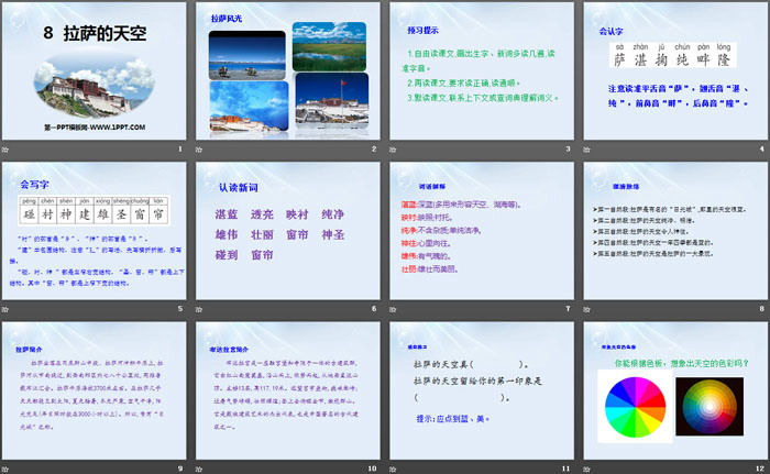 关键词:鄂教版三年级上册语文PPT课件免费下载,拉萨的天空PPT下载,.PPT格式;