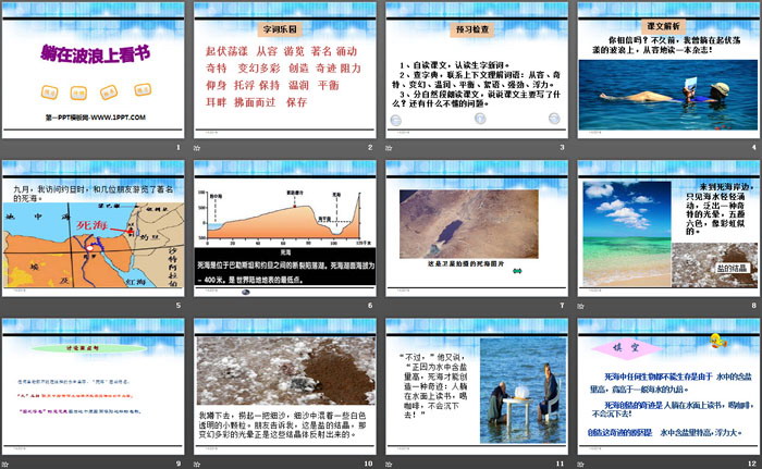关键词:鄂教版三年级下册语文PPT课件免费下载,躺在波浪上看书PPT下载,.PPT格式;