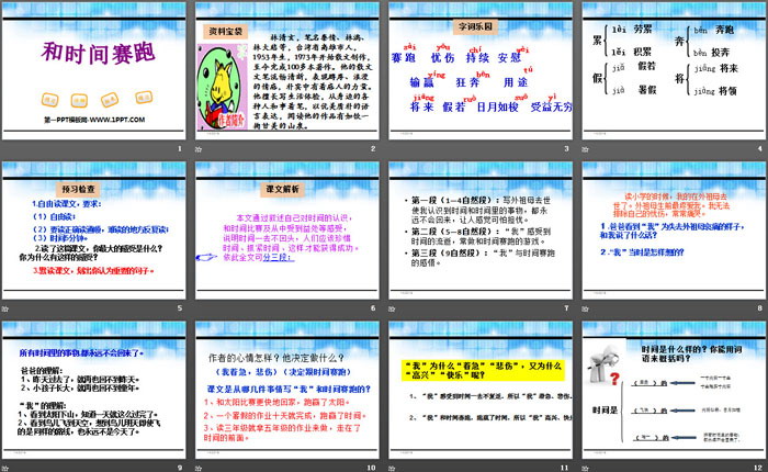 关键词:鄂教版三年级下册语文PPT课件免费下载,和时间赛跑PPT下载,.PPT格式;