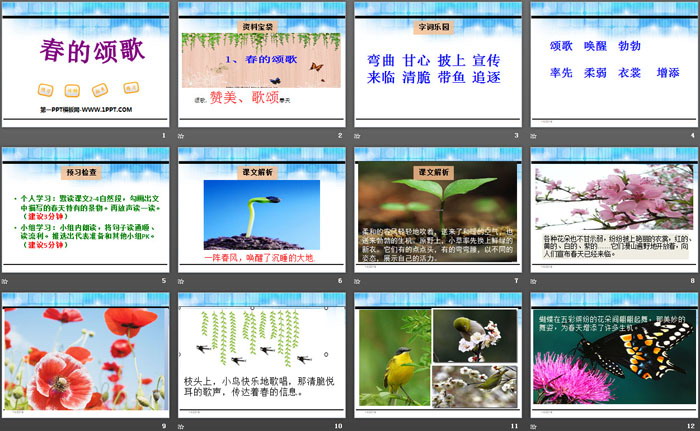 关键词:鄂教版三年级下册语文PPT课件免费下载,春的颂歌PPT下载,.PPT格式;