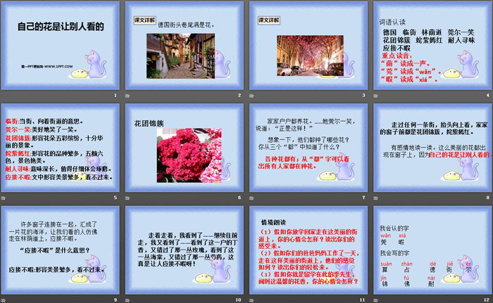 关键词:鄂教版四年级上册语文PPT课件免费下载,自己的花是让别人看的PPT下载,.PPT格式;