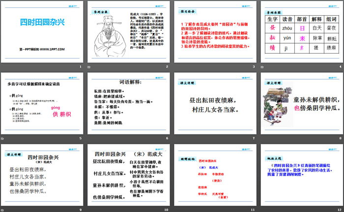 关键词:鄂教版四年级上册语文PPT课件免费下载,四时田园杂兴PPT下载,.PPT格式;