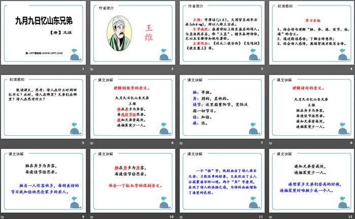 关键词:鄂教版四年级上册语文PPT课件免费下载,九月九日忆山东兄弟PPT下载,.PPT格式;