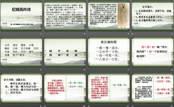 纪晓岚吟诗PPT,第三部分内容:诗文对照,读懂古诗。