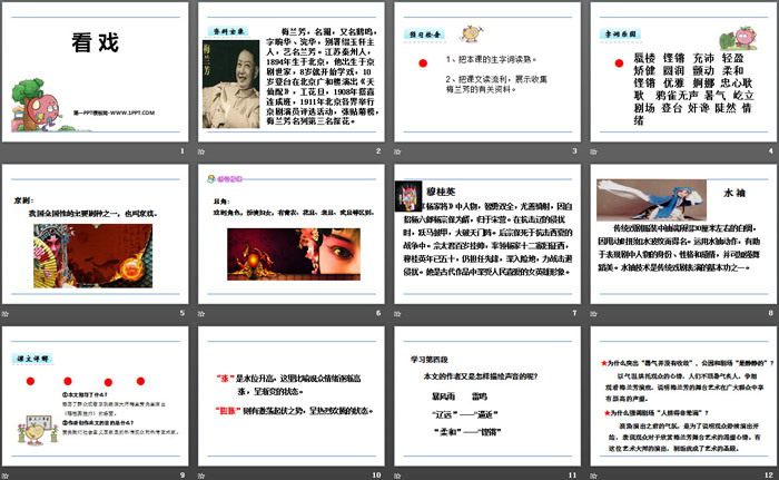 关键词:鄂教版四年级下册语文PPT课件免费下载,看戏PPT下载,.PPT格式;