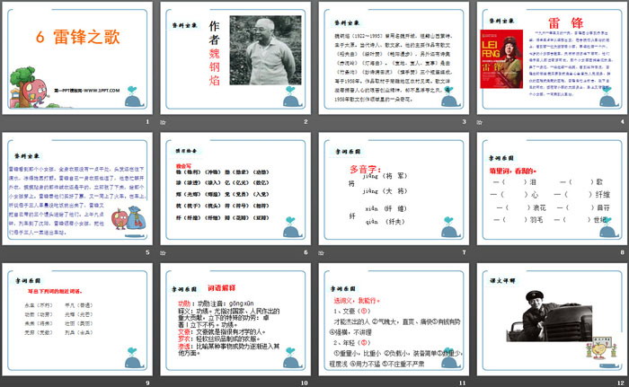 关键词:鄂教版五年级上册语文PPT课件免费下载,雷锋之歌PPT下载,.PPT格式;