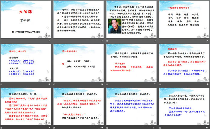 关键词:鄂教版五年级上册语文PPT课件免费下载,太阳路PPT下载,.PPT格式;
