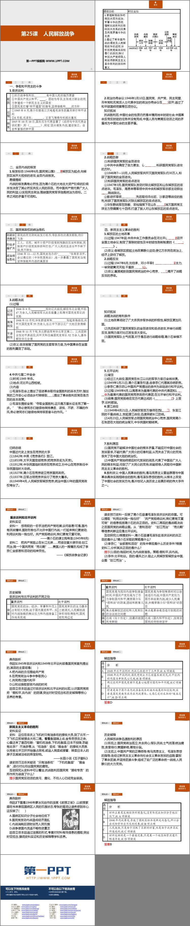《人民解放战争》PPT课件包含课程目标、课前篇自主预习、课堂篇探究学习等内容。