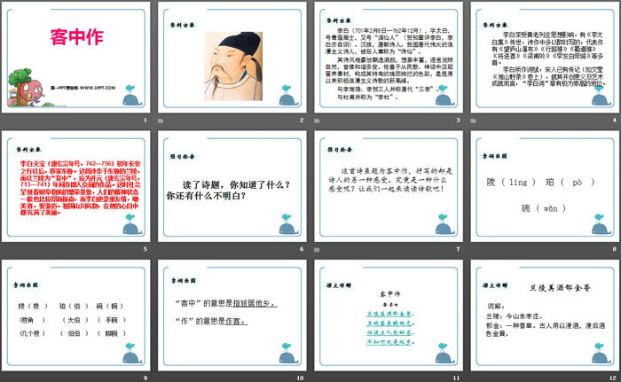 关键词:鄂教版五年级上册语文PPT课件免费下载,客中作PPT下载,.PPT格式;
