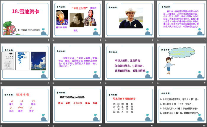 关键词:鄂教版五年级上册语文PPT课件免费下载,雪地贺卡PPT下载,.PPT格式;