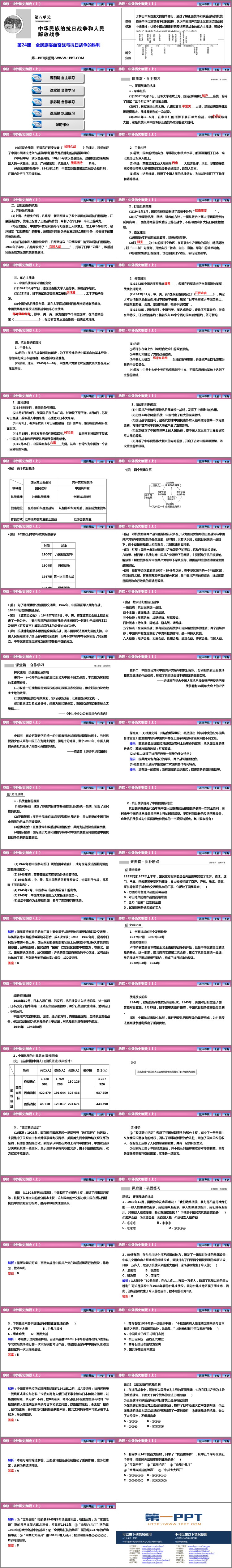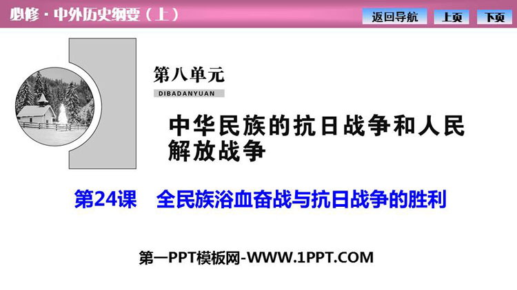 《全民族浴血奋战和抗日战争的胜利》PPT课件包含课程导航、自主学习、合作学习、巩固练习等内容。