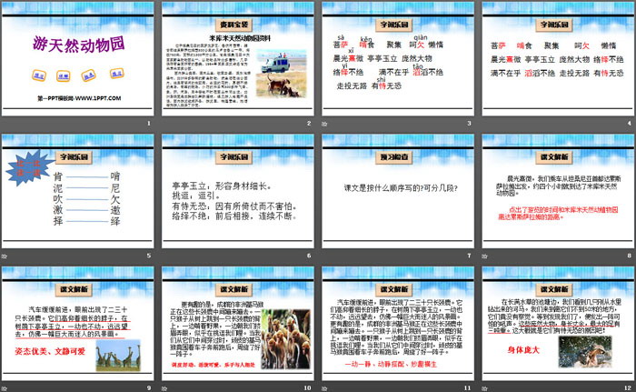 关键词:鄂教版五年级下册语文PPT课件免费下载,游天然动物园PPT下载,.PPT格式;