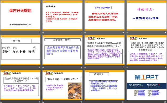 关键词:鄂教版五年级下册语文PPT课件免费下载,盘古开天辟地PPT下载,.PPT格式;