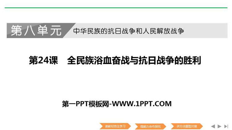 《全民族浴血奋战和抗日战争的胜利》PPT课件包含课程导航、自主学习、合作探究、题型对接等内容。