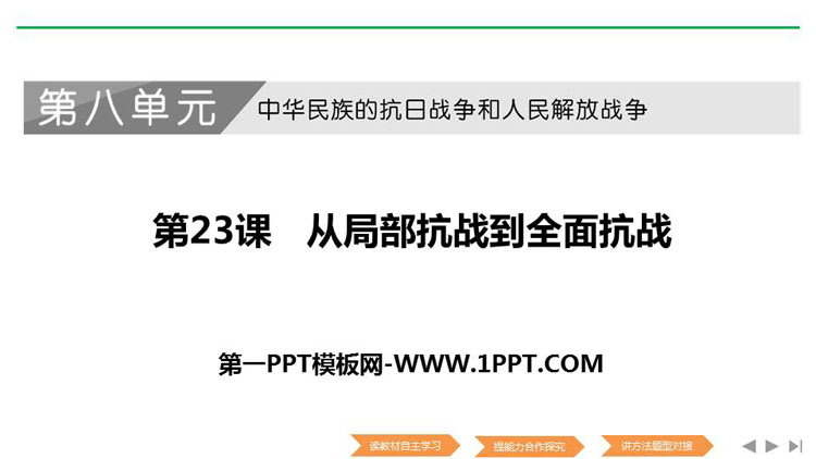 《从局部抗战到全面抗战》PPT课件包含课程导航、自主学习、合作探究、题型对接等内容。