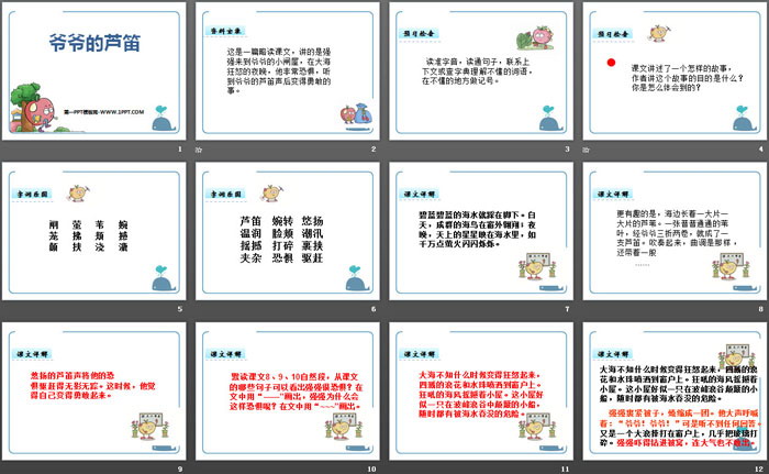 关键词:鄂教版六年级上册语文PPT课件免费下载,爷爷的芦笛PPT下载,.PPT格式;