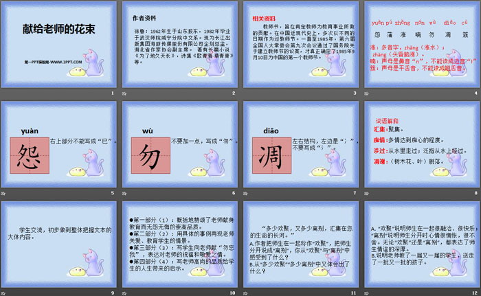 关键词:鄂教版六年级上册语文PPT课件免费下载,献给老师的花束PPT下载,.PPT格式;