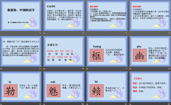 关键词:鄂教版六年级上册语文PPT课件免费下载,我爱你中国的汉字PPT下载,.PPT格式;