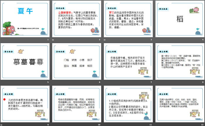 关键词:鄂教版六年级上册语文PPT课件免费下载,夏午PPT下载,.PPT格式;