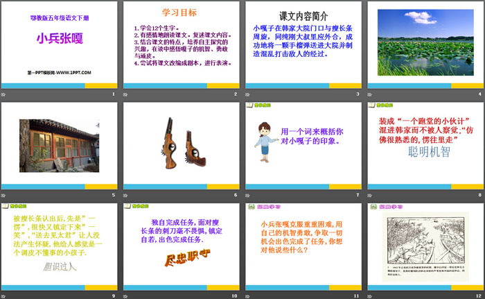 关键词:鄂教版五年级下册语文PPT课件免费下载,小兵张嘎PPT下载,.PPT格式;