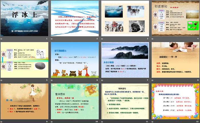 关键词:鄂教版六年级上册语文PPT课件免费下载,浮冰上PPT下载,.PPT格式;