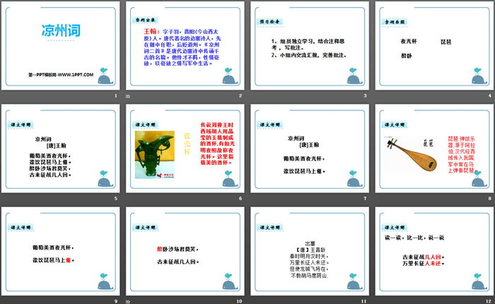 关键词:鄂教版六年级上册语文PPT课件免费下载,凉州词PPT下载,.PPT格式;