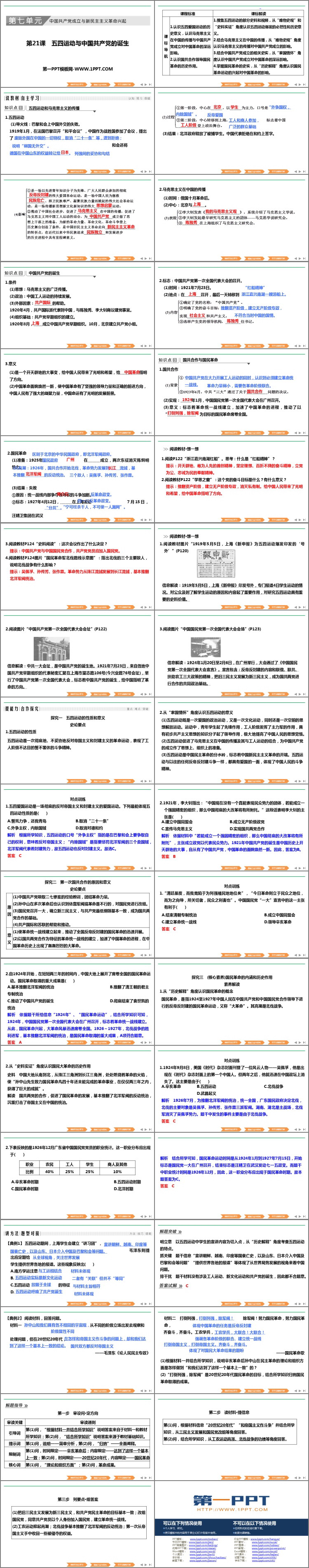 统编版中外历史纲要上册《五四运动与中国共产党的诞生》PPT下载,共36页。