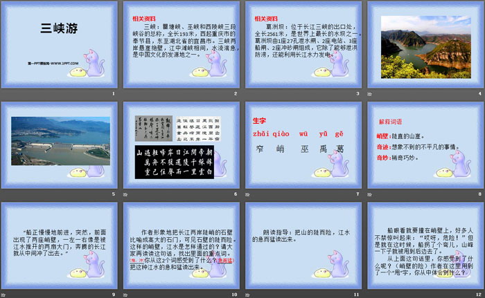 关键词:鄂教版六年级上册语文PPT课件免费下载,三峡游PPT下载,.PPT格式;