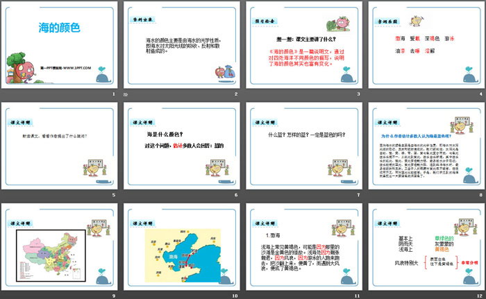 关键词:鄂教版六年级上册语文PPT课件免费下载,海的颜色PPT下载,.PPT格式;