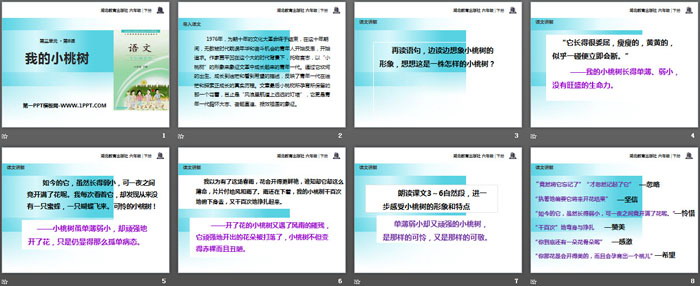 关键词:鄂教版六年级下册语文PPT课件免费下载,我的小桃树PPT下载,.PPT格式;