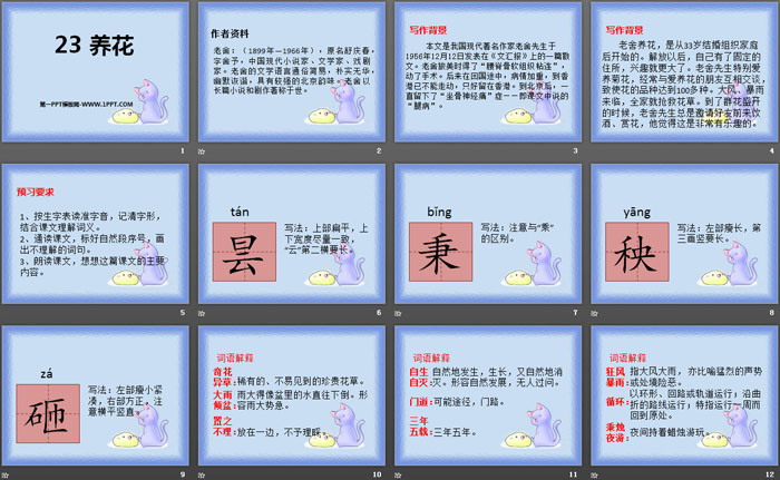 关键词:鄂教版六年级上册语文PPT课件免费下载,养花PPT下载,.PPT格式;