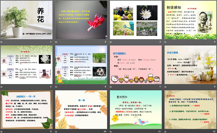 关键词:鄂教版六年级上册语文PPT课件免费下载,养花PPT下载,.PPT格式;