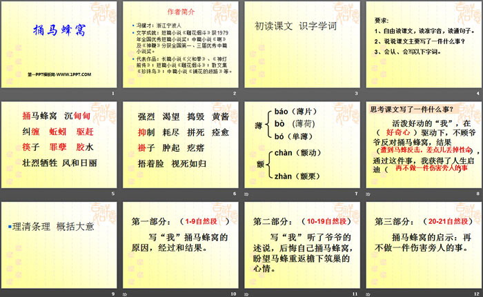 捅马蜂窝PPT,第二部分内容:初读课文 识字学词