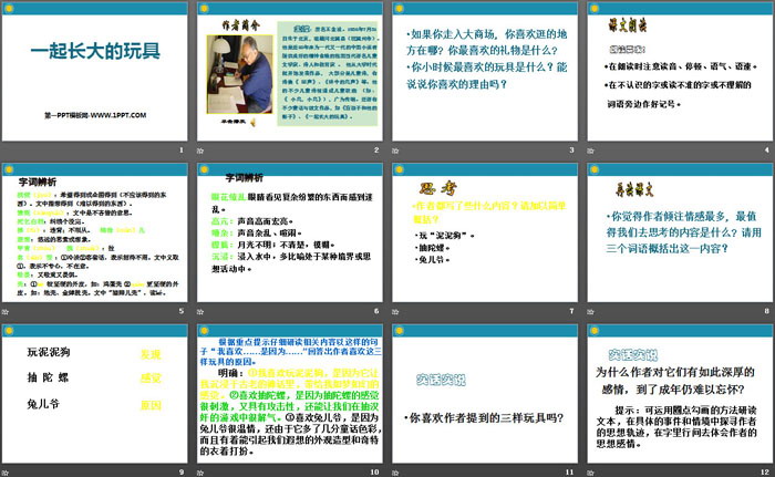 关键词:鄂教版七年级上册语文PPT课件免费下载,一起长大的玩具PPT下载,.PPT格式;