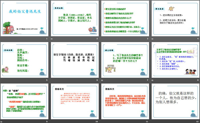 关键词:鄂教版六年级下册语文PPT课件免费下载,我的伯父鲁迅先生PPT下载,.PPT格式;