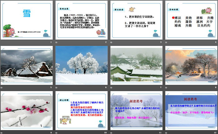 关键词:鄂教版六年级下册语文PPT课件免费下载,雪PPT下载,.PPT格式;