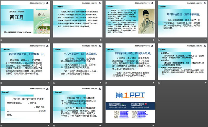 关键词:鄂教版六年级下册语文PPT课件免费下载,西江月PPT下载,.PPT格式;