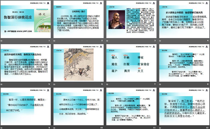 关键词:鄂教版六年级下册语文PPT课件免费下载,鲁智深行侠桃花庄PPT下载,.PPT格式;