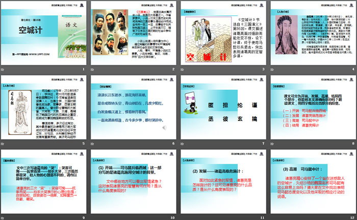 关键词:鄂教版六年级下册语文PPT课件免费下载,空城计PPT下载,.PPT格式;