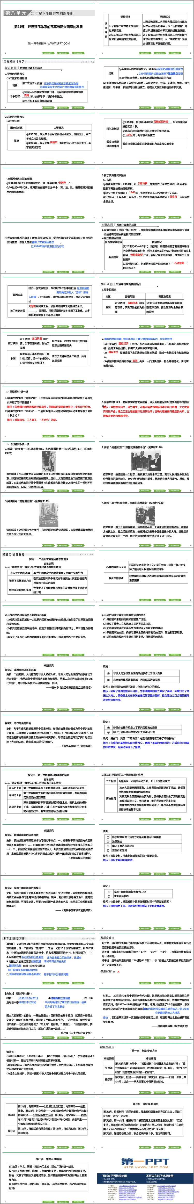 统编版中外历史纲要下册《世界殖民体系的瓦解与新兴国家的发展》PPT课件下载,共44页。