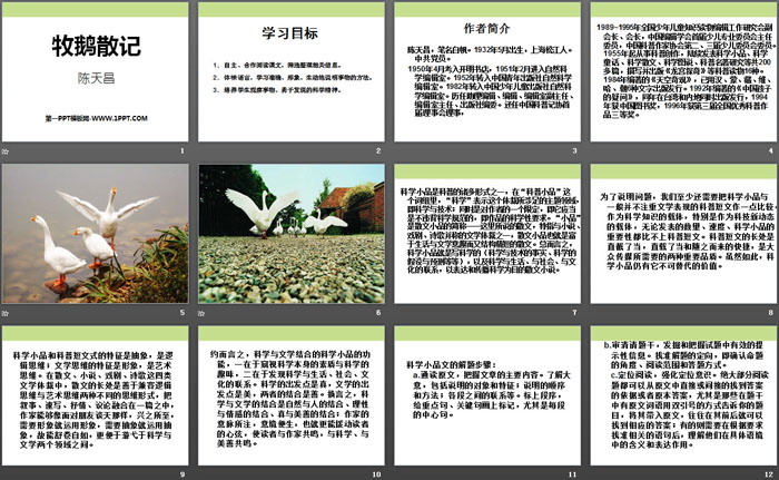 关键词:鄂教版七年级上册语文PPT课件免费下载,牧鹅散记PPT下载,.PPT格式;