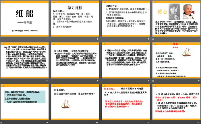 关键词:鄂教版七年级上册语文PPT课件免费下载,纸船寄母亲PPT下载,.PPT格式;