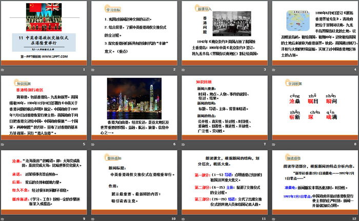 中英香港政权交接仪式在港隆重举行PPT,第三部分内容:字词积累