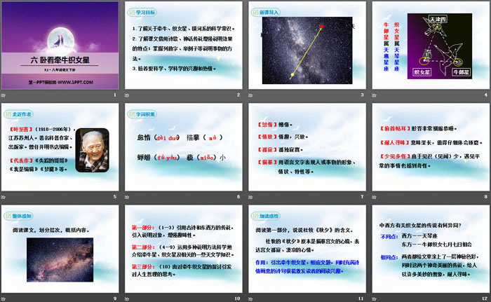 关键词:鄂教版八年级下册语文PPT课件免费下载,卧看牵牛织女星PPT下载,.PPT格式;