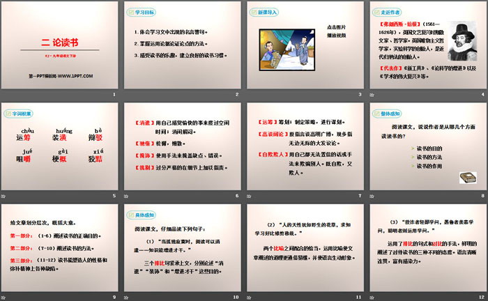 关键词:鄂教版九年级下册语文PPT课件免费下载,论读书PPT下载,.PPT格式;