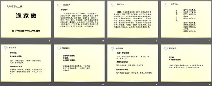 关键词:鄂教版九年级上册语文PPT课件免费下载,渔家傲PPT下载,.PPT格式;