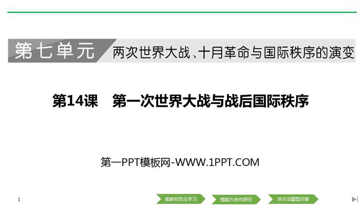 《第一次世界大战与战后国际秩序》PPT课件包含自主学习、合作探究、题型对接等内容。
