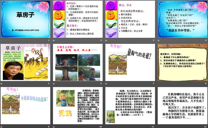 关键词:鄂教版九年级上册语文PPT课件免费下载,草房子PPT下载,.PPT格式;