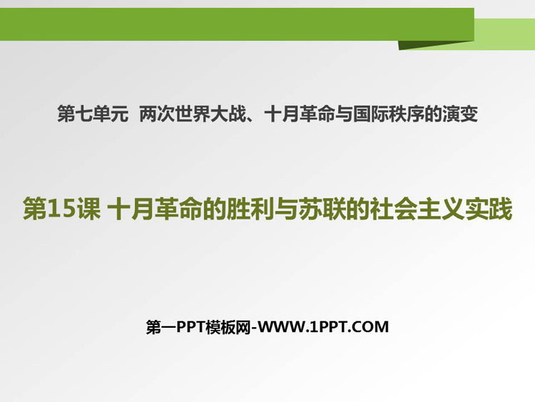 关键词:十月革命的胜利与苏联的社会主义实践PPT课件免费下载,两次世界大战十月革命与国际秩序的演变PPT下载,.PPT格式;
