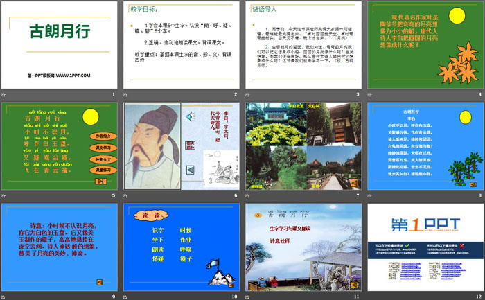 关键词:鄂教版九年级下册语文PPT课件免费下载,古朗月行PPT下载,.PPT格式;